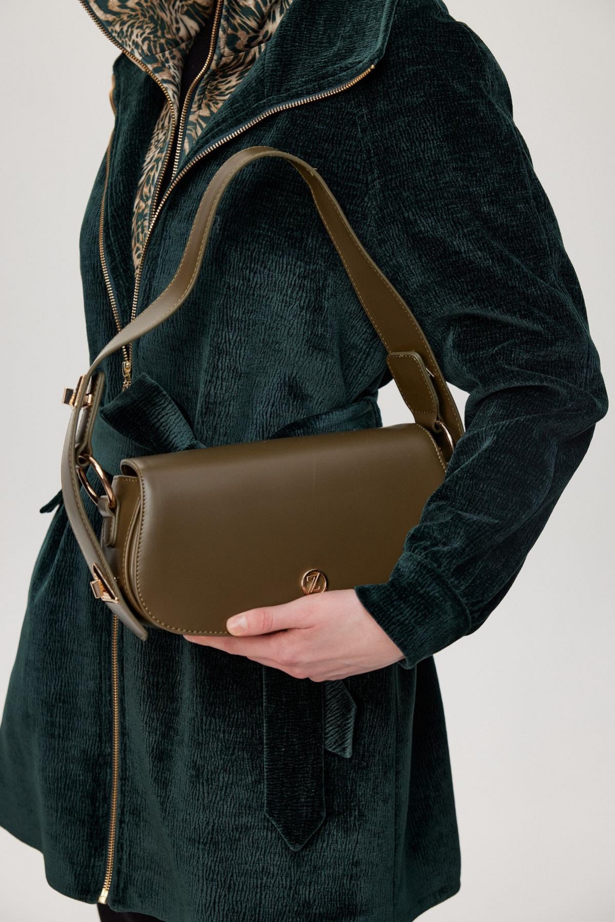 Leopard Print Belted Green Jacket 0179