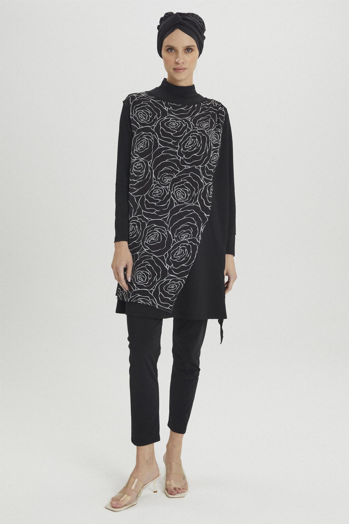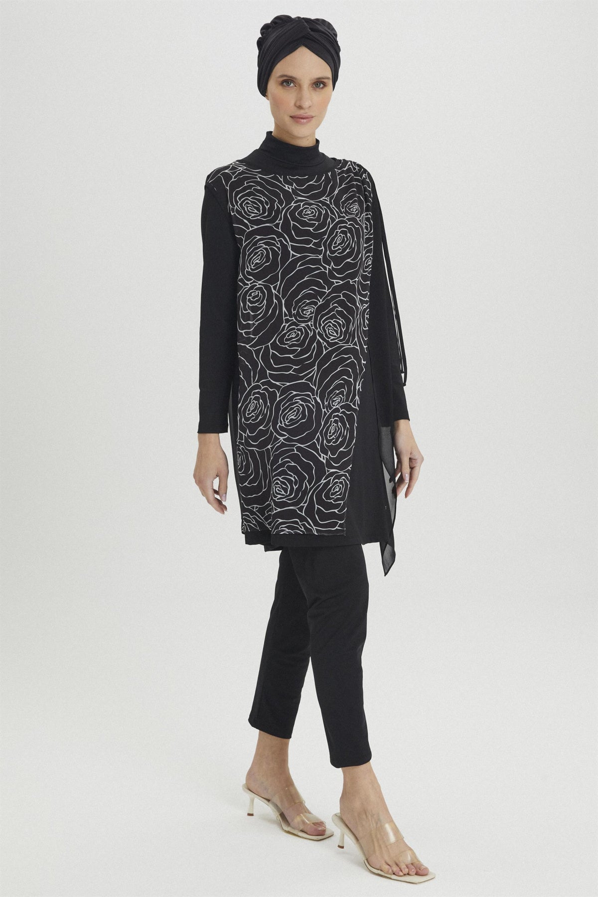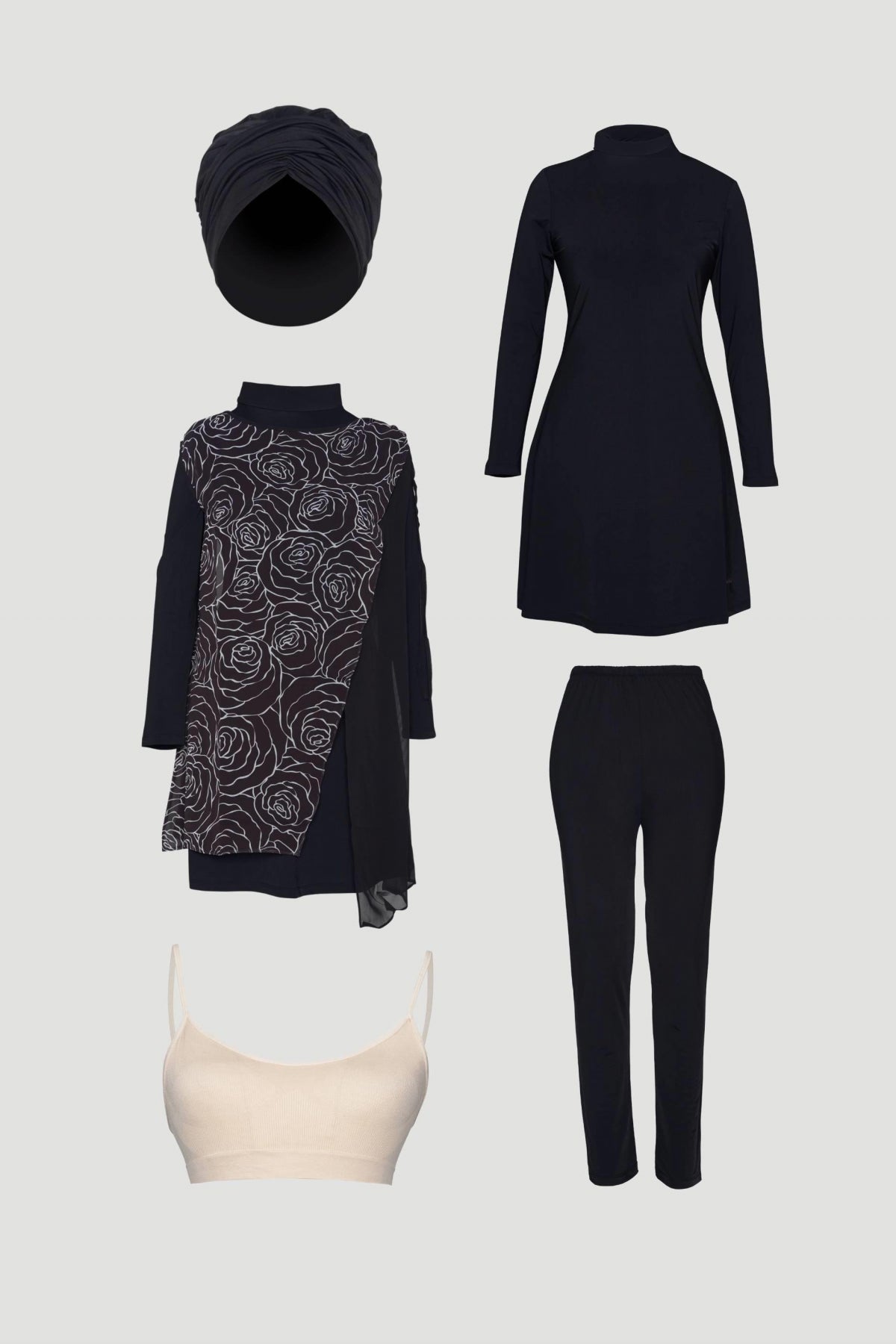 - Package Contents: The set consists of 5 pieces: top, leggings, pareo, bonnet, and bustier.
