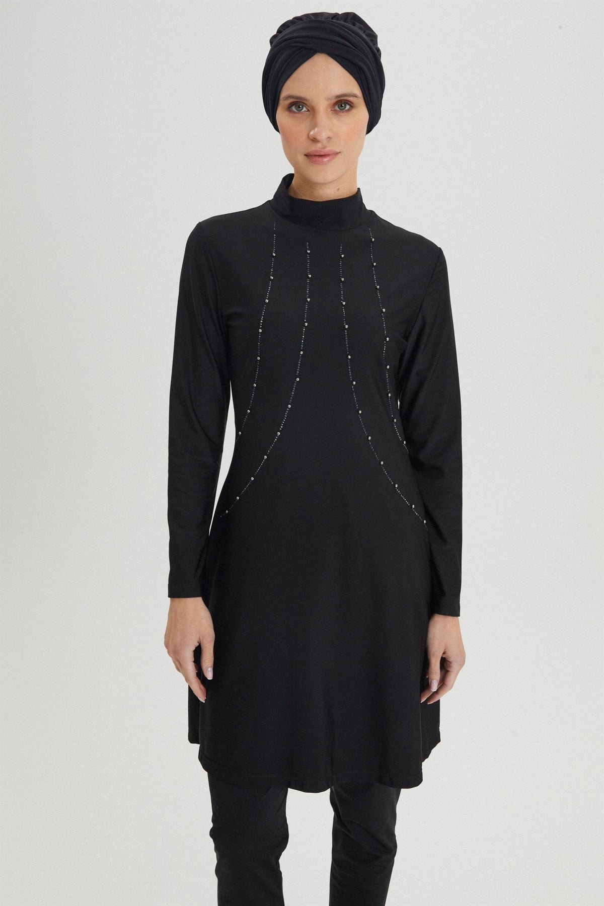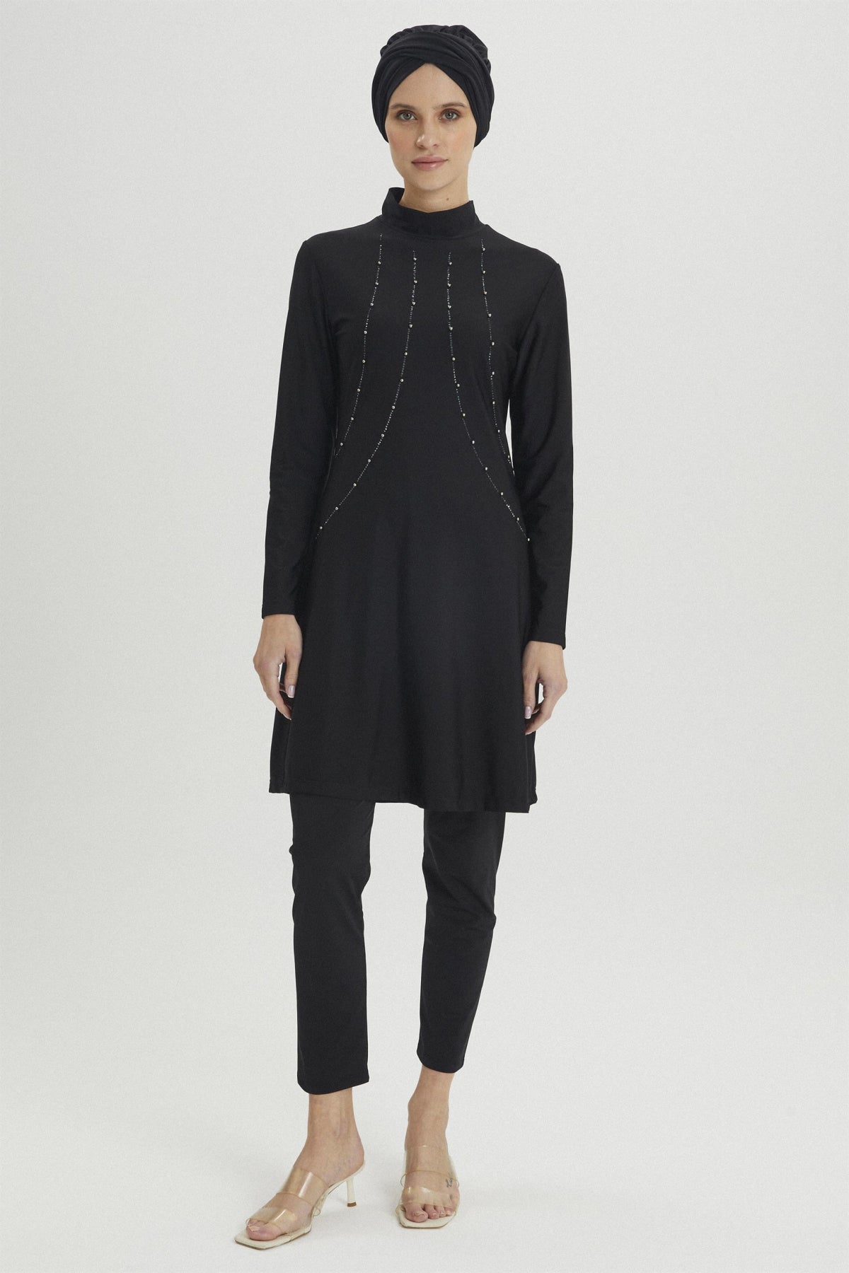 Detailed Embroidered Full Coverage Swimsuit Black Beachwear 0015