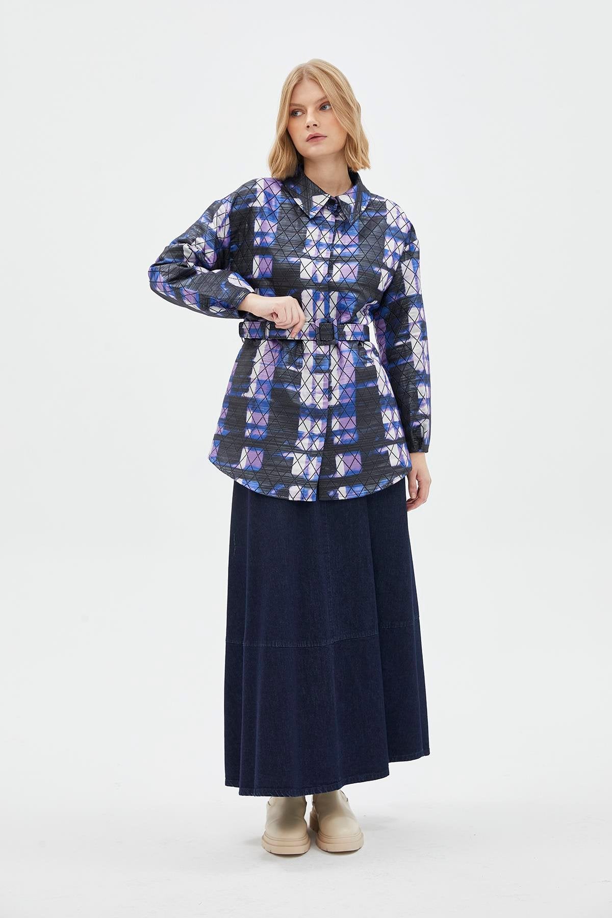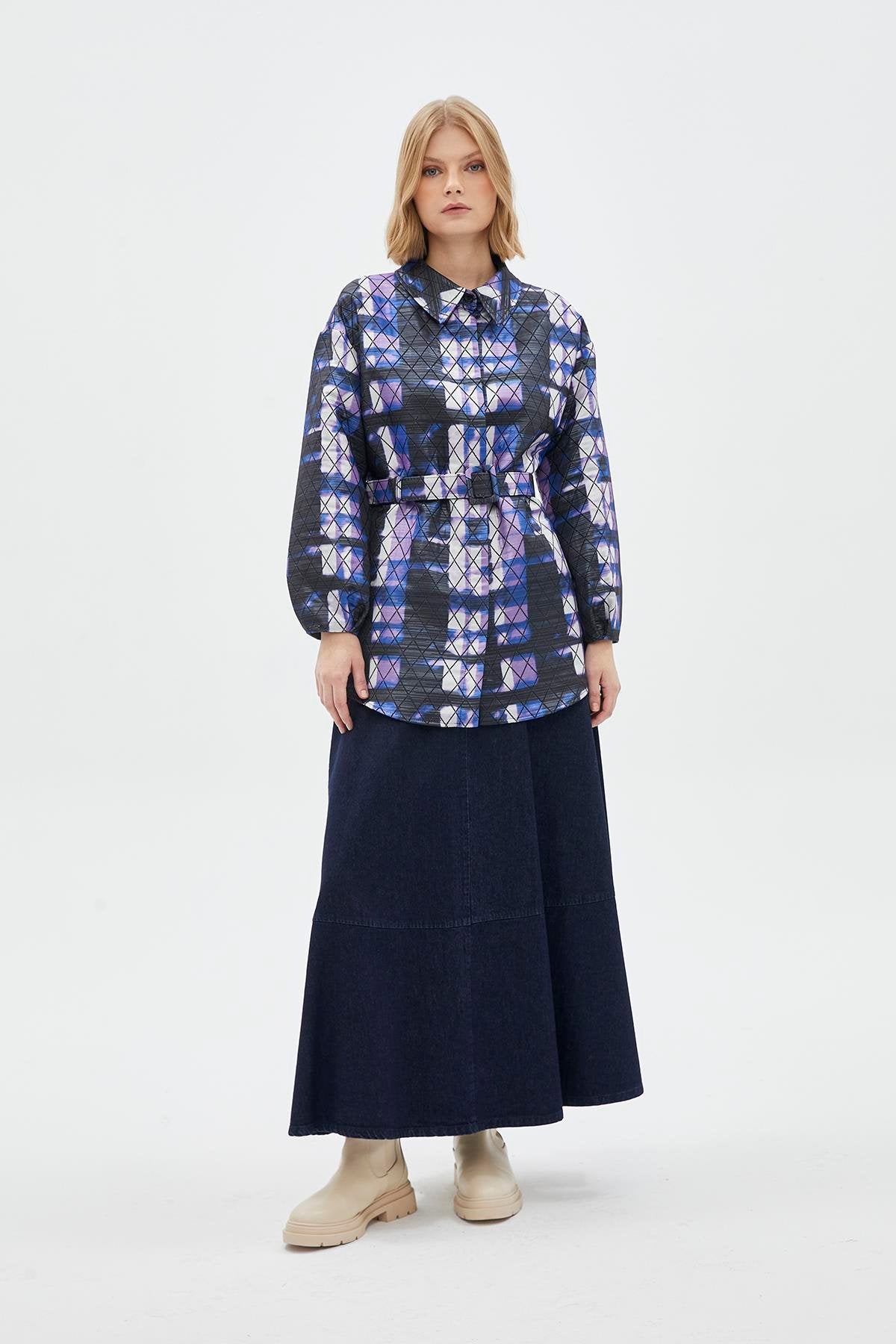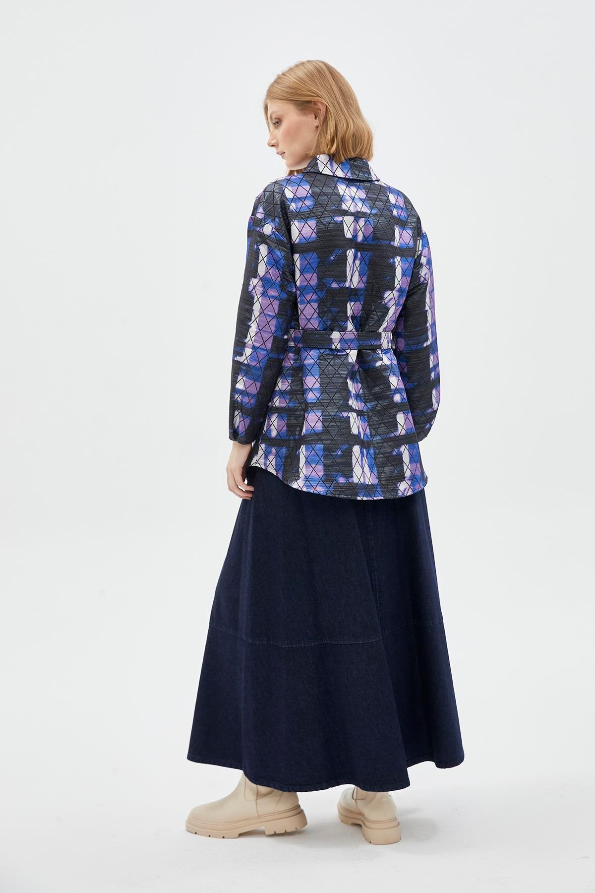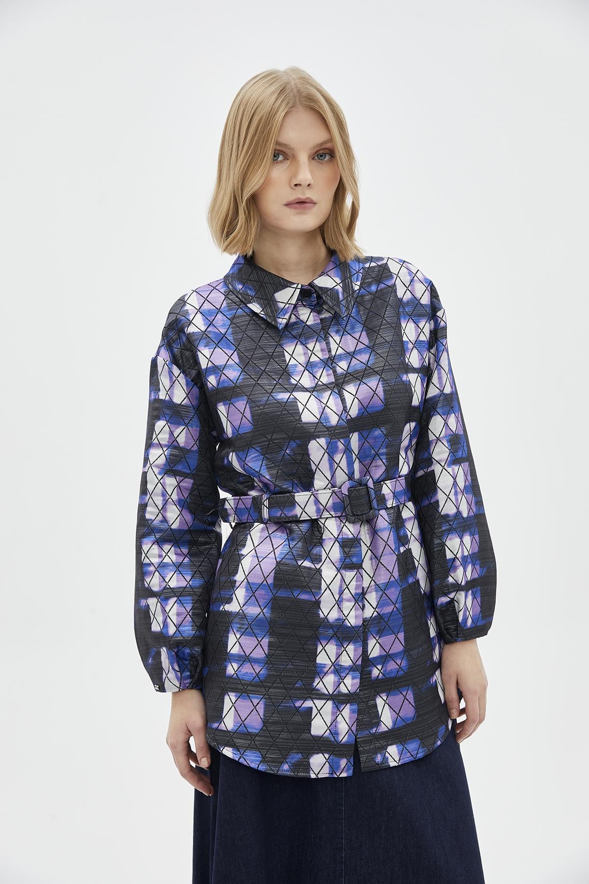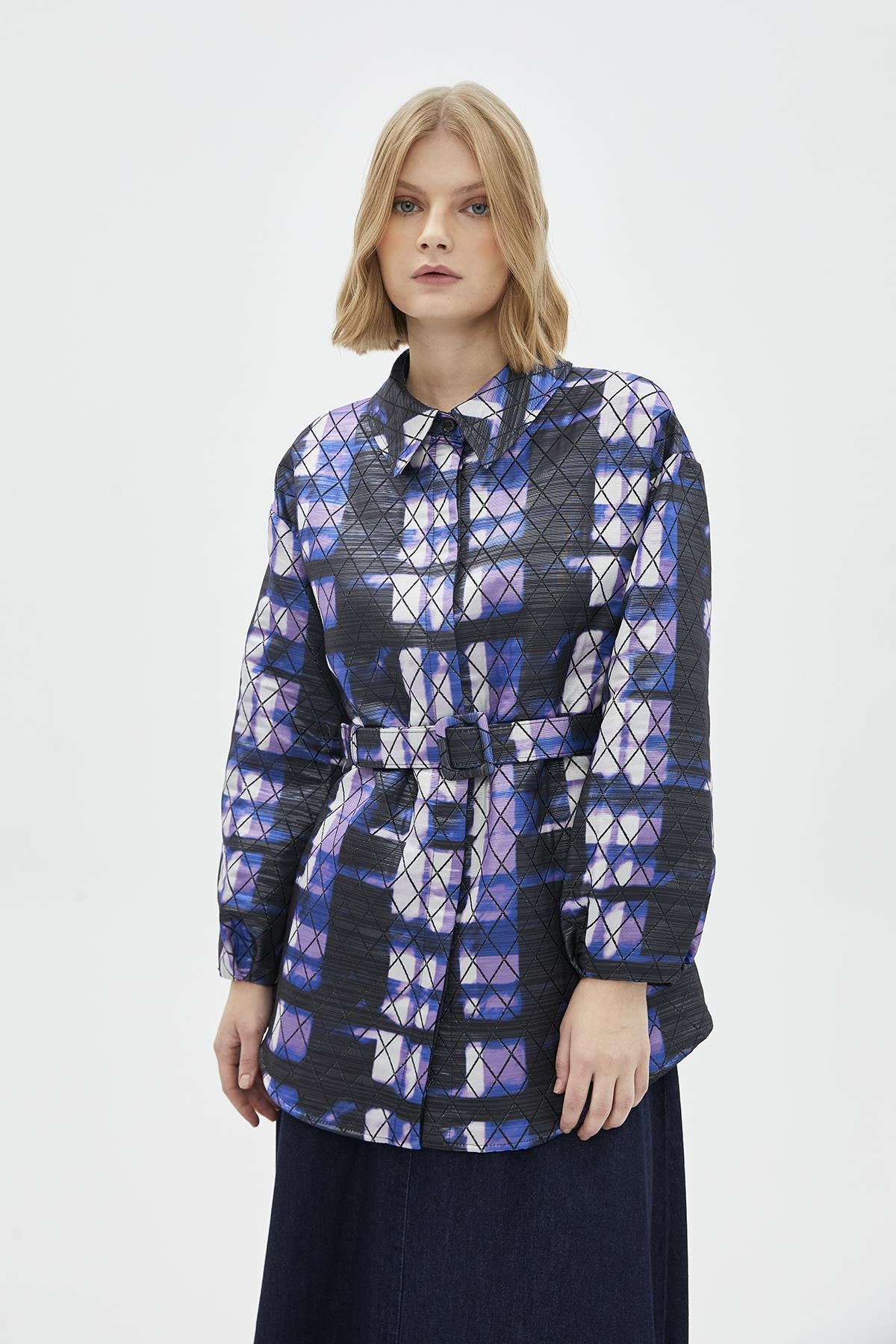 Features of the Baklava Patterned Orange Jacket with Belt Detail C-0105