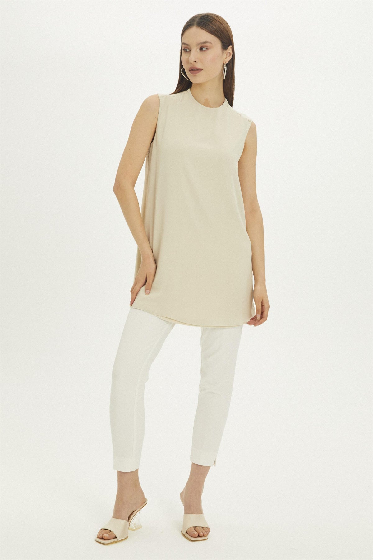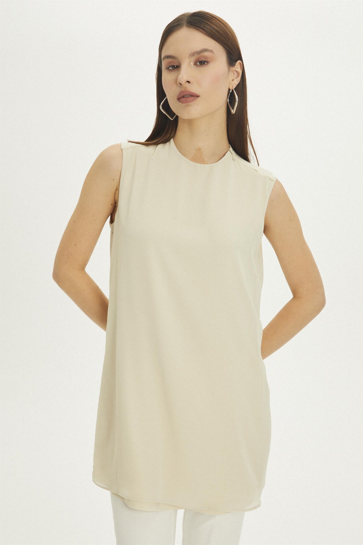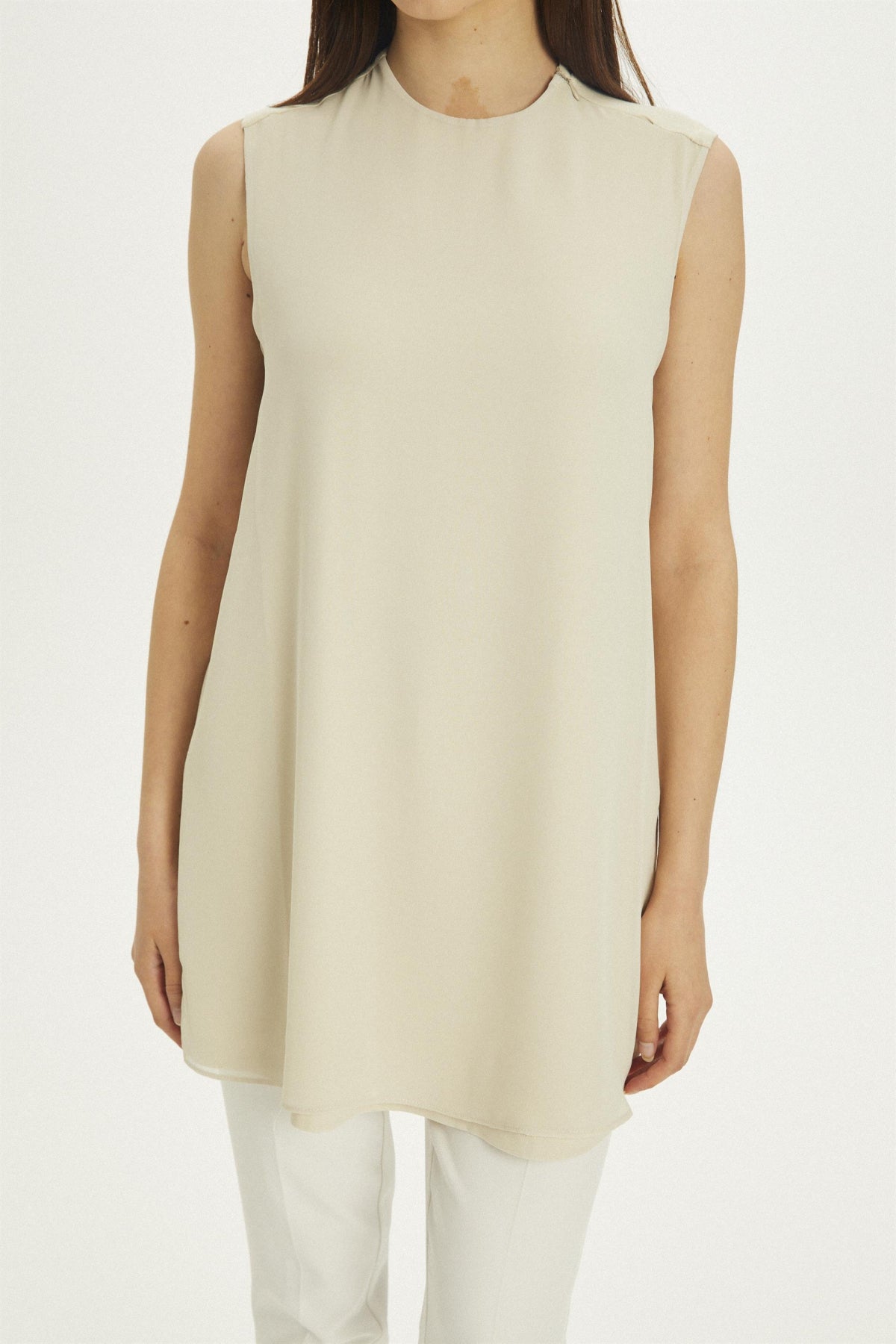 Crew Neck Sleeveless Undershirt Beige Tunic 0002
