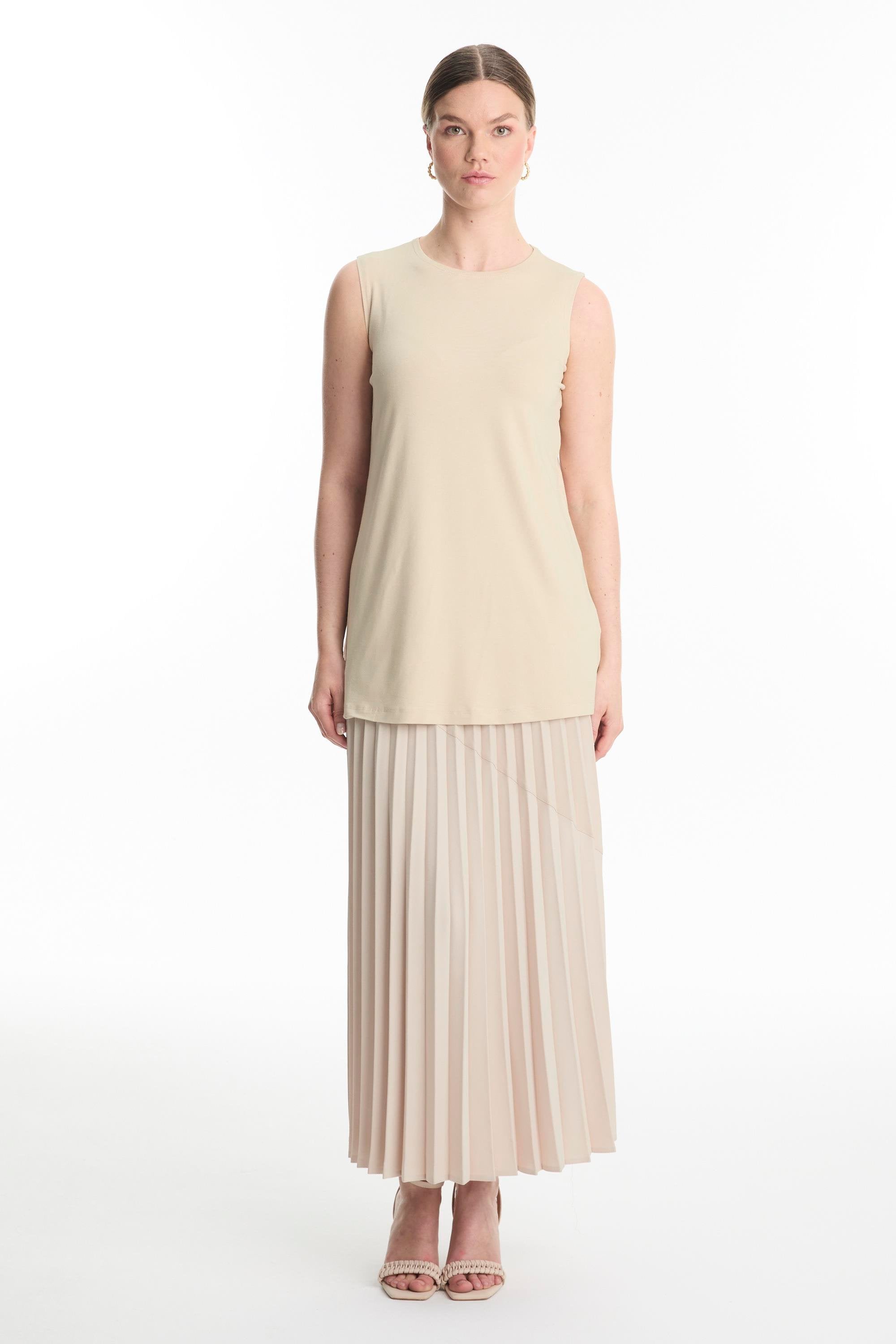 Crew Neck Sleeveless Undershirt Beige Tunic 0012