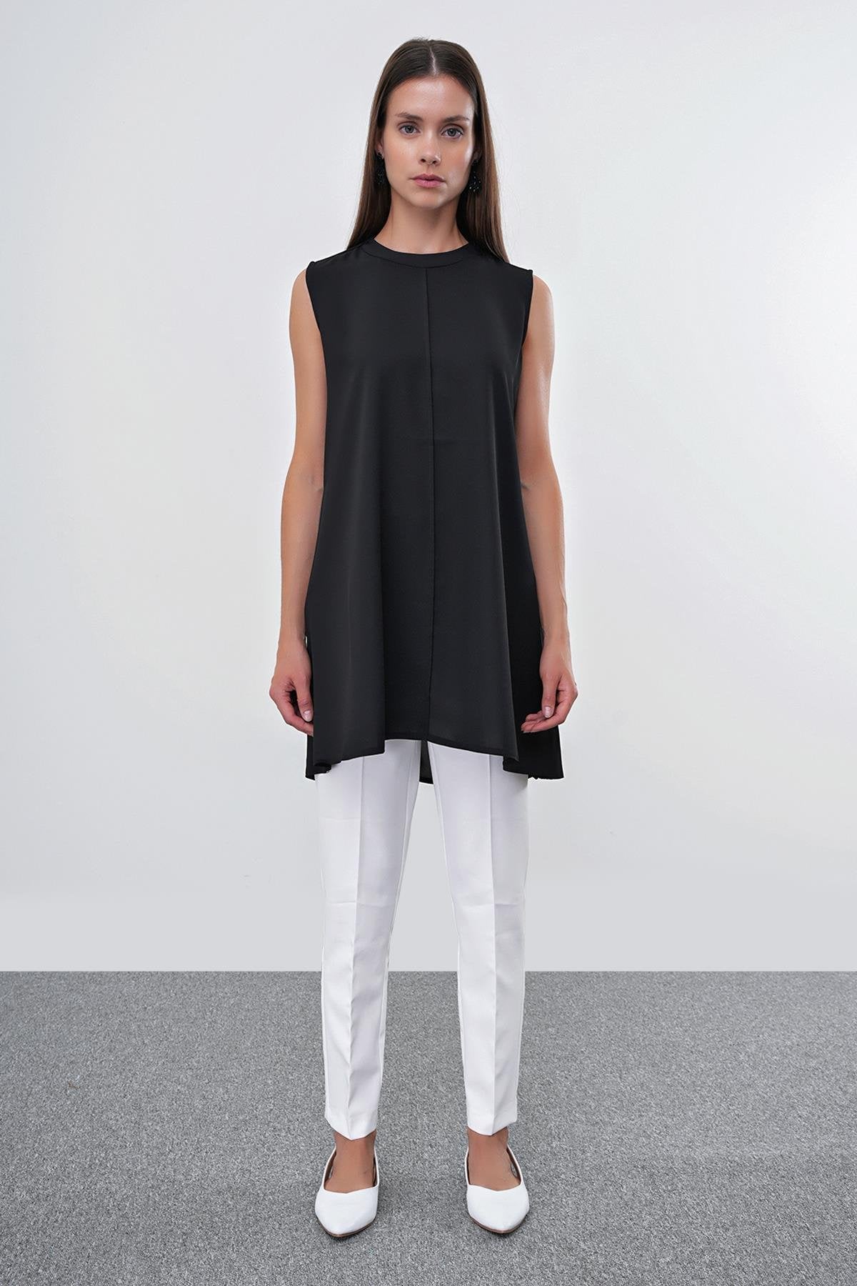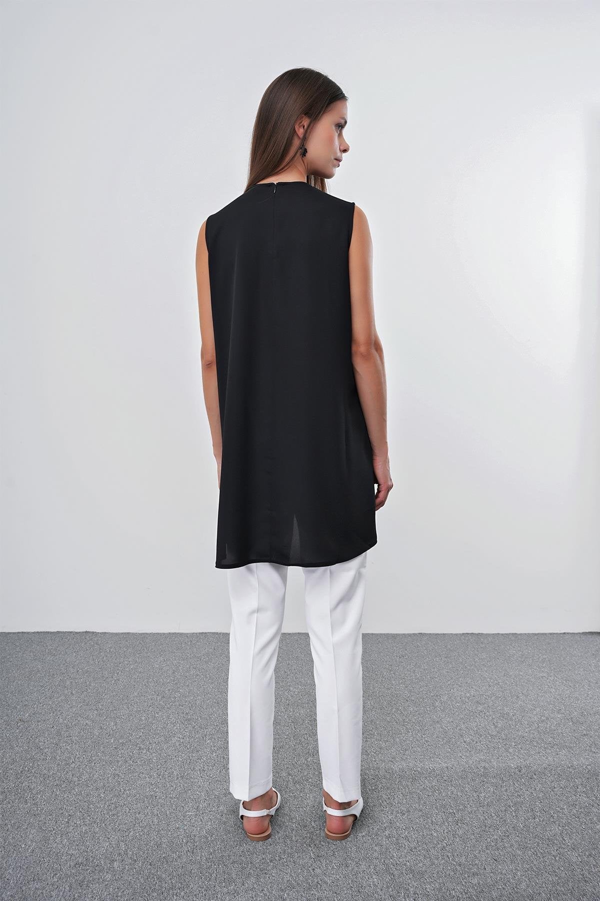 Crew Neck Sleeveless Undershirt Black Tunic 0007