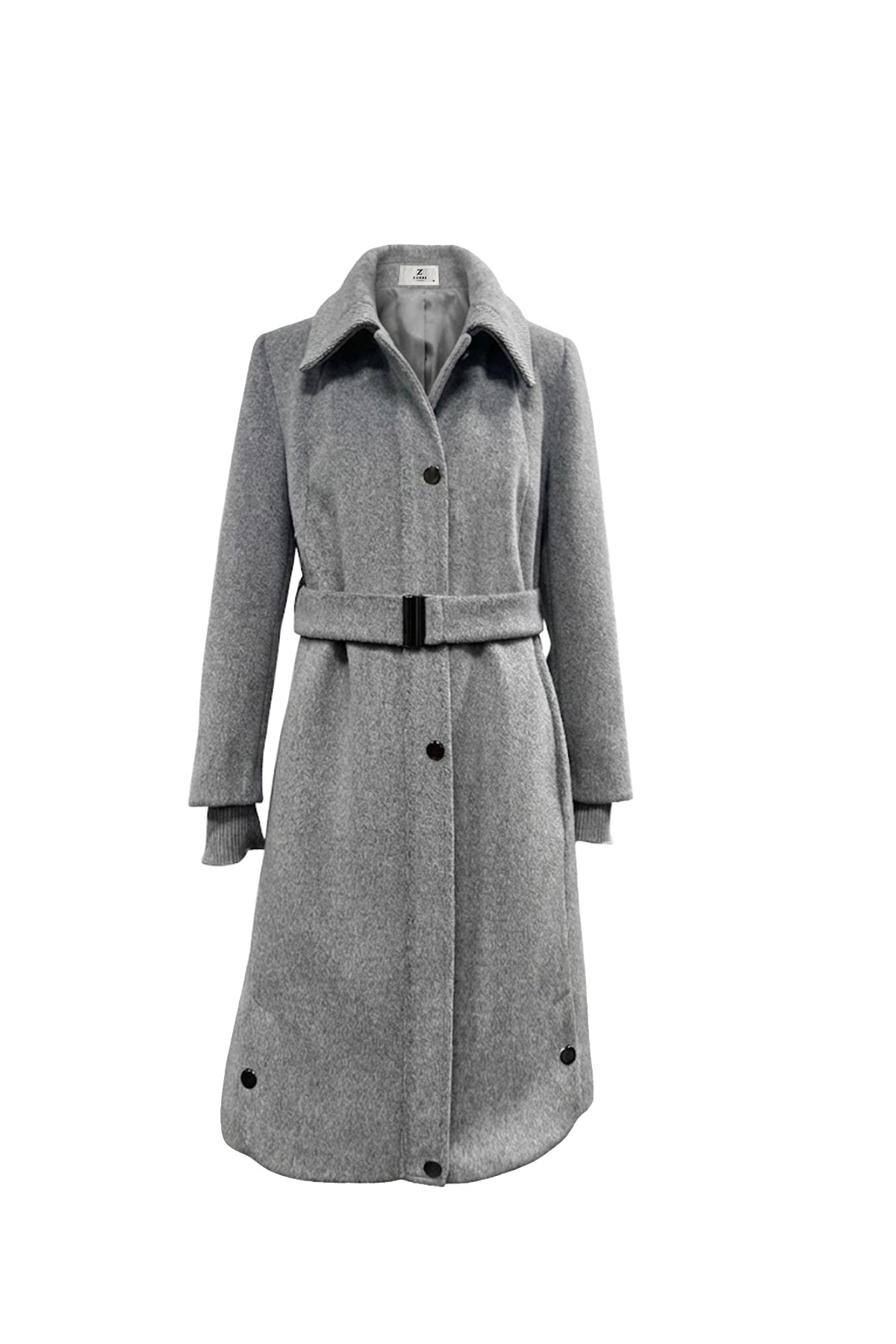 Wide Collar Belted Gray Cashmere Coat 14041