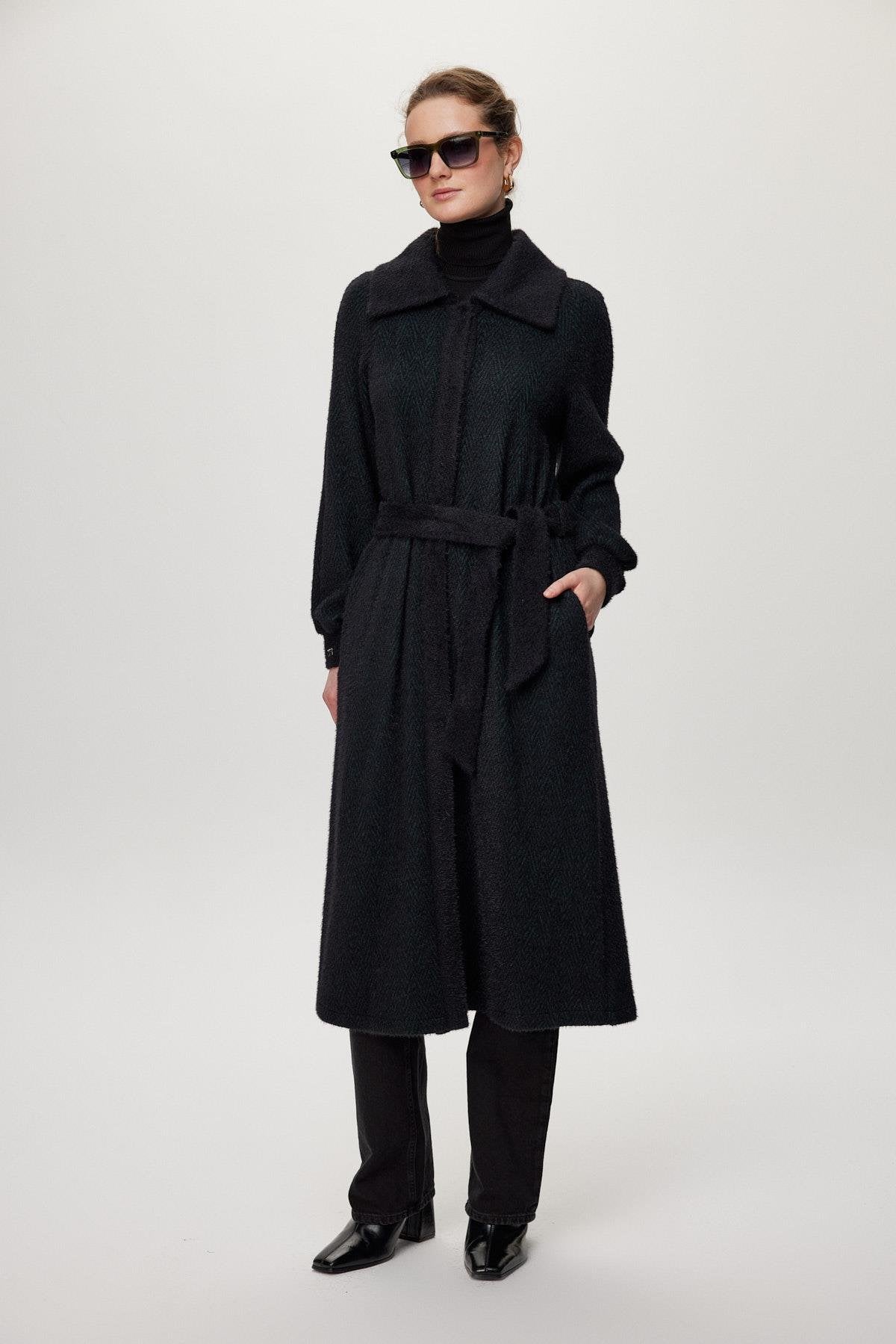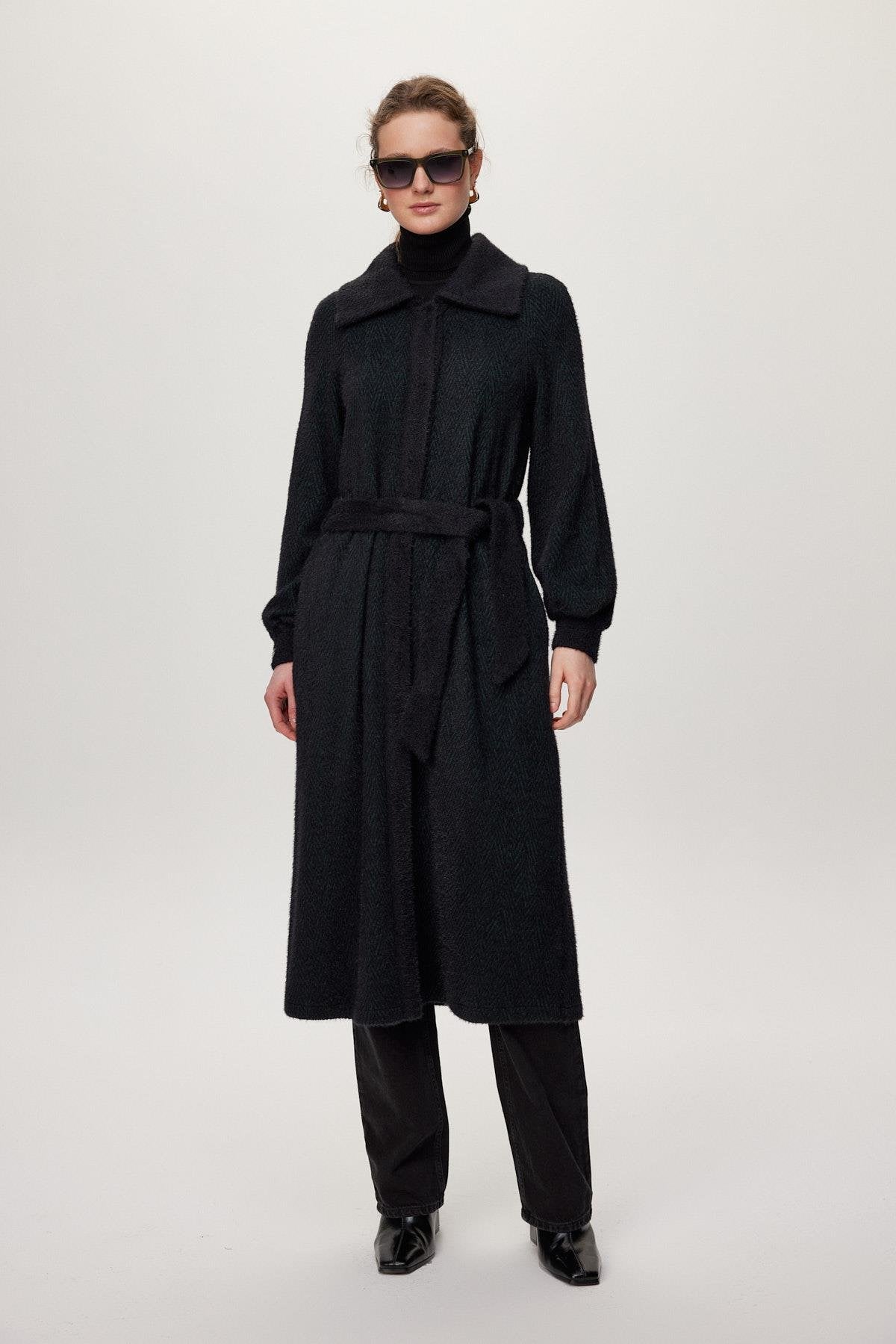 With its soft texture and modern cut, this ready-to-wear model will complete your style in cold weather. Its hood detail and belted design offer both a chic and functional look. It provides a wide range of uses, from everyday wear to special occasions.