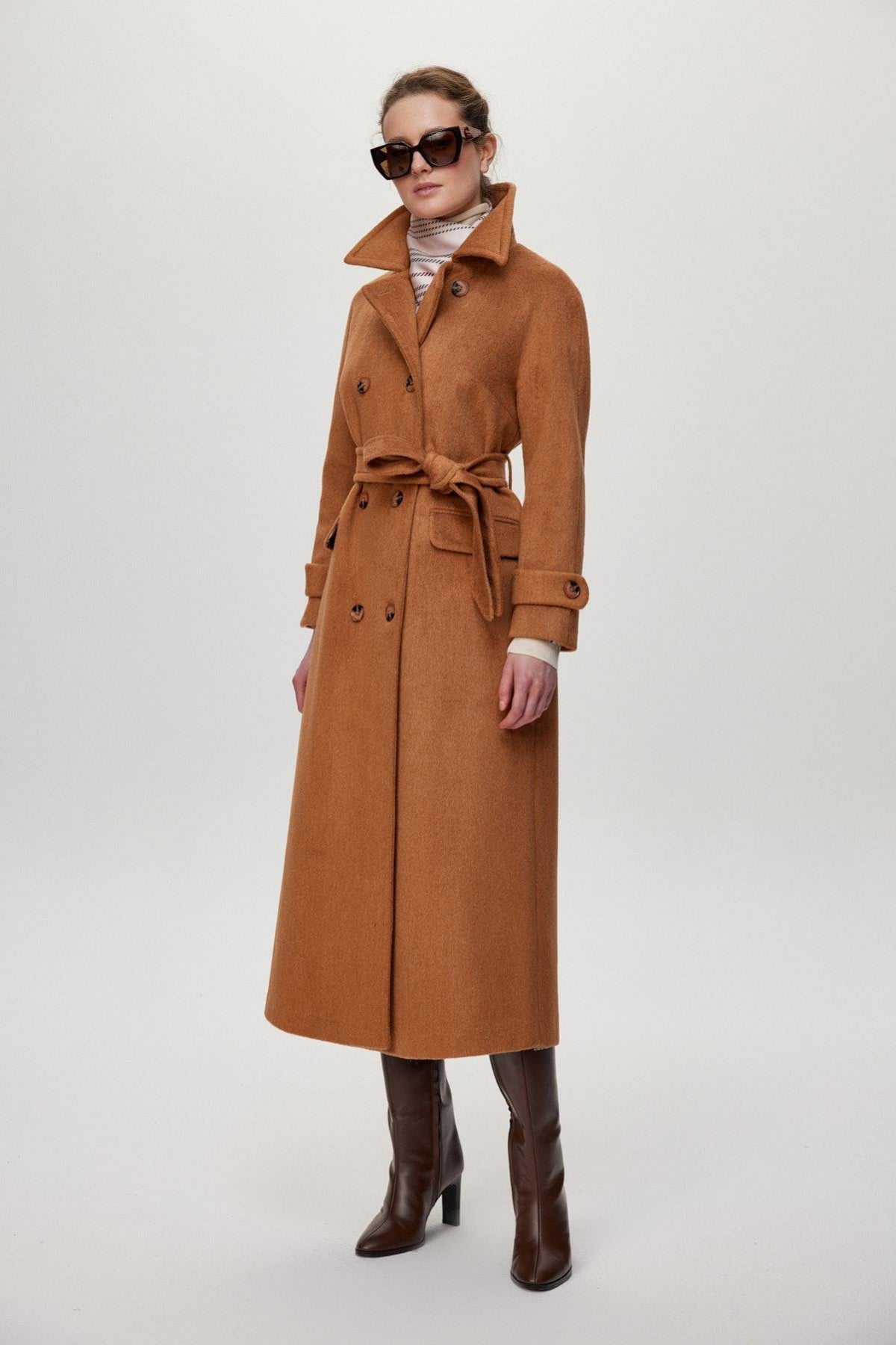 Çift Cepli Kuşaklı Kaşe Mocha Kaban 13659