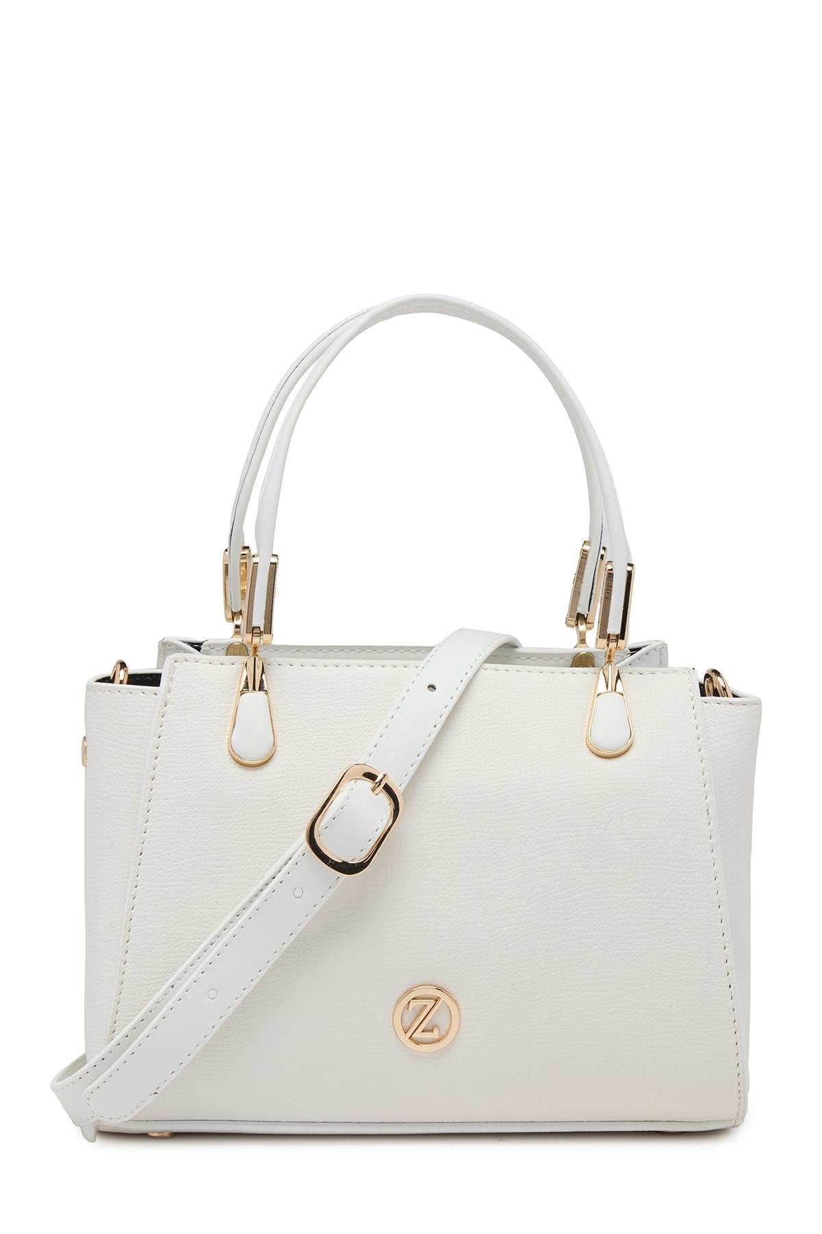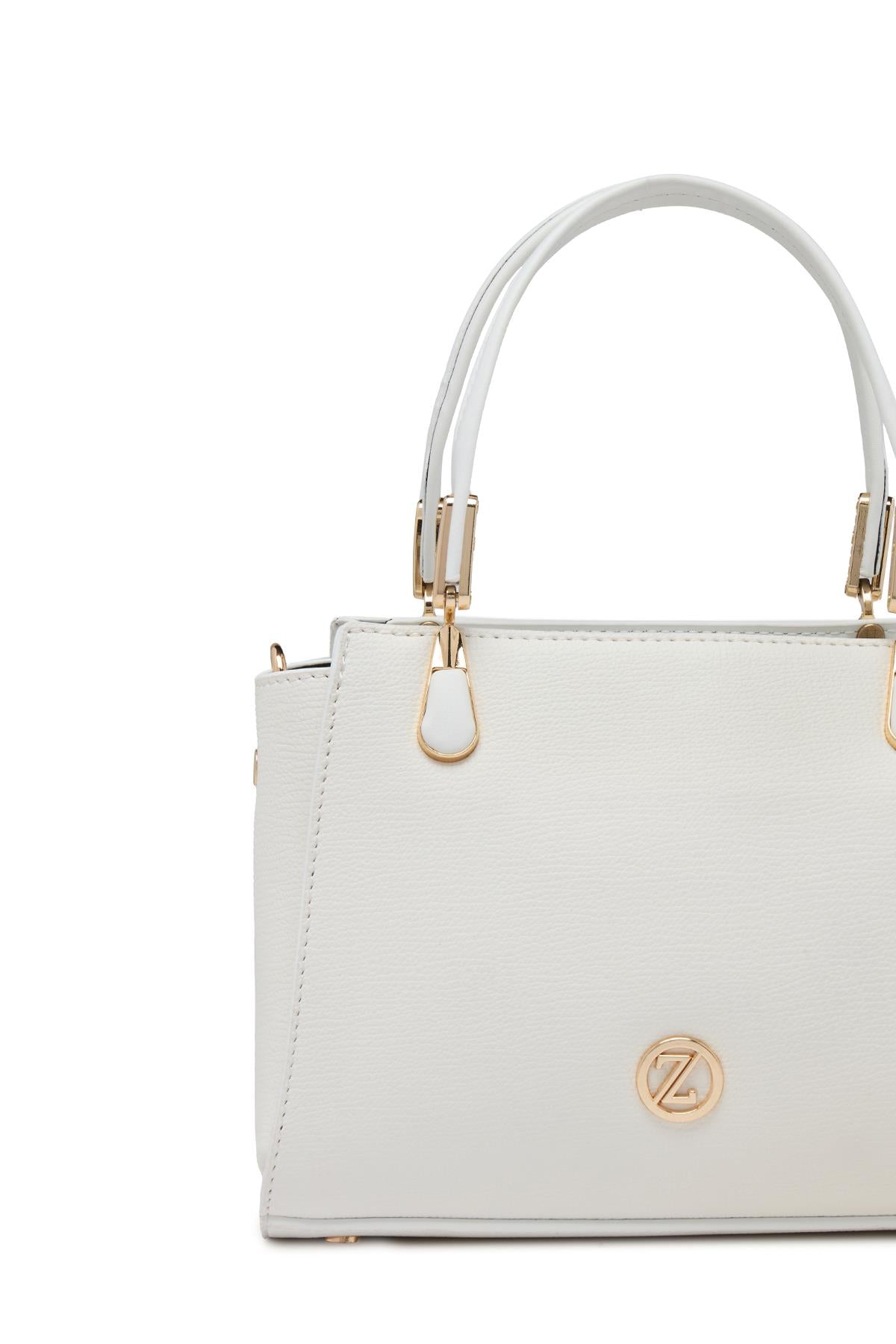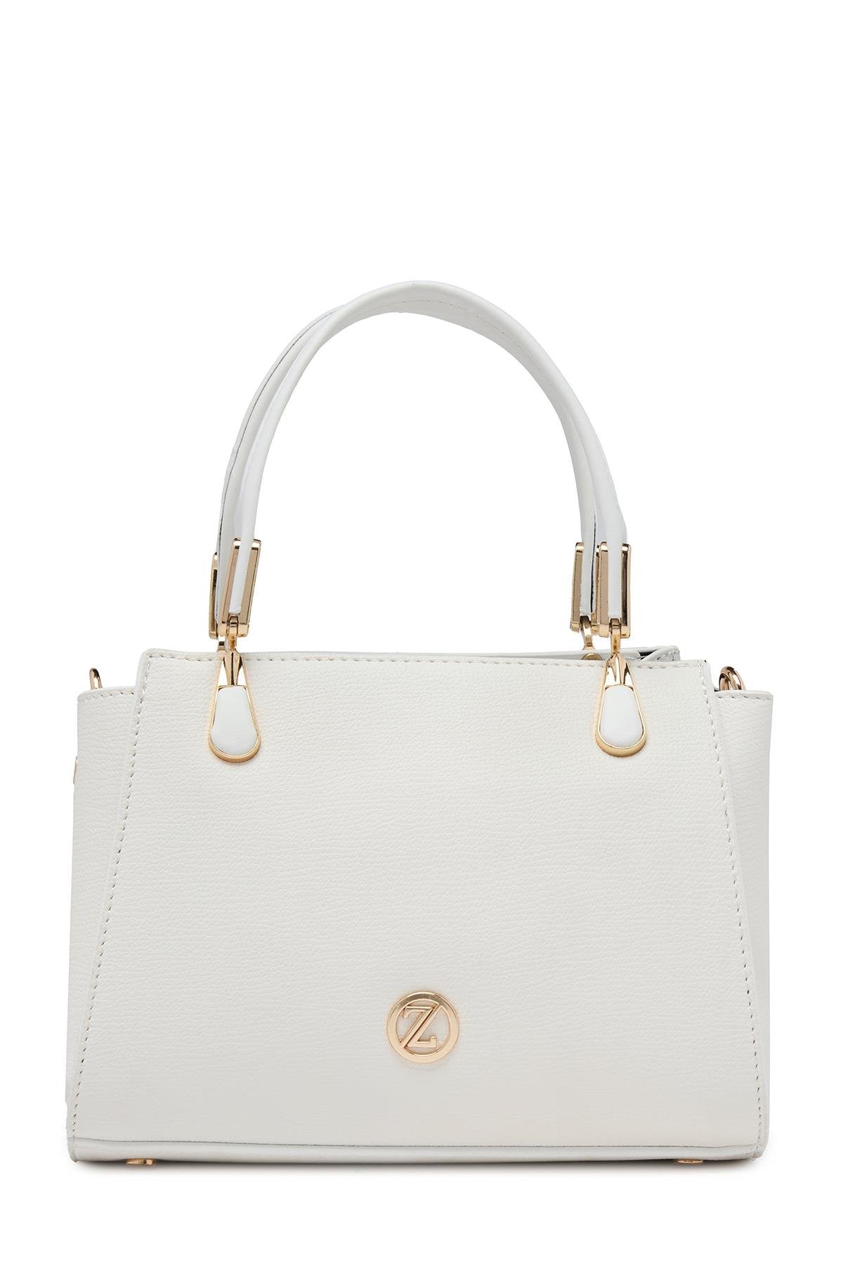 Dokulu Fermuar Kapamalı El Ve Omuz Beyaz Çanta 0047