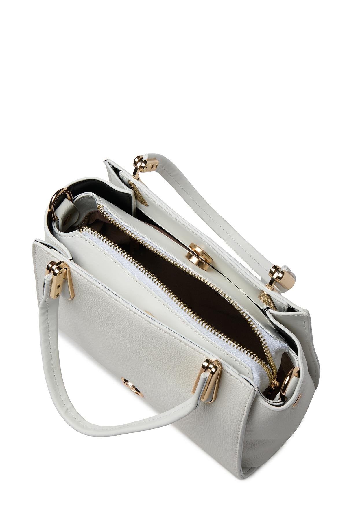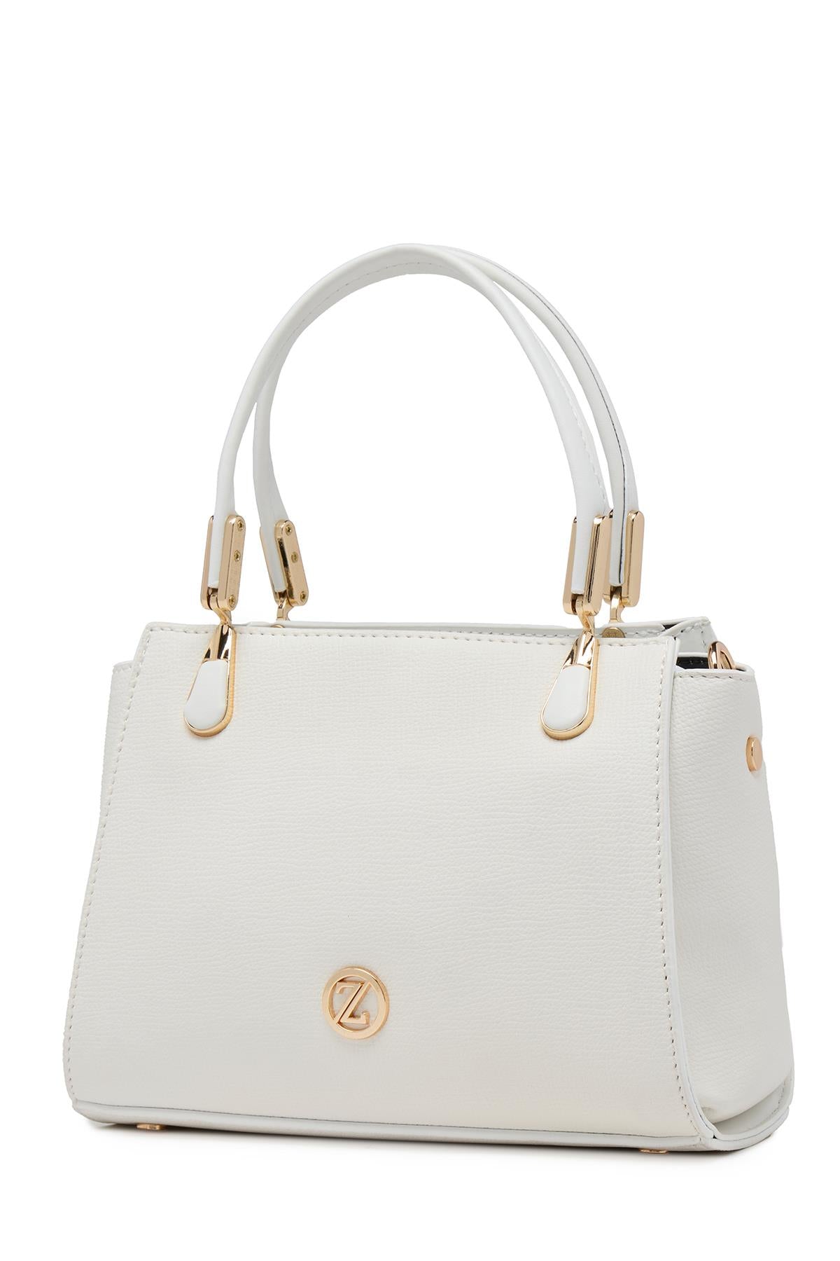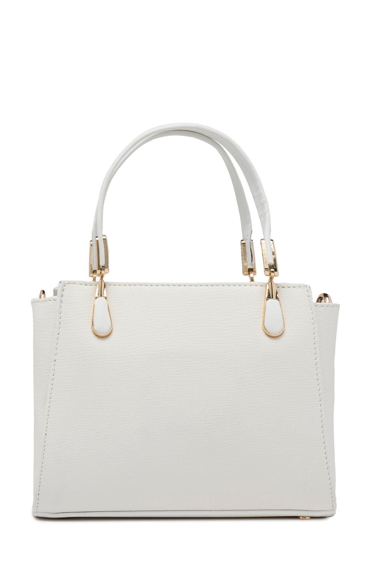 Dokulu Fermuar Kapamalı El Ve Omuz Beyaz Çanta 0047