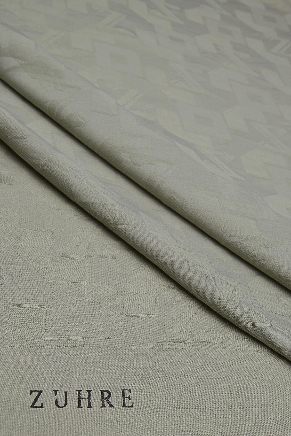 Ürün Detayları: Geometrik monogram desenli, Hafif parlak doku, Dökümlü kumaş yapısı, Dört kenarı overlok dikişli