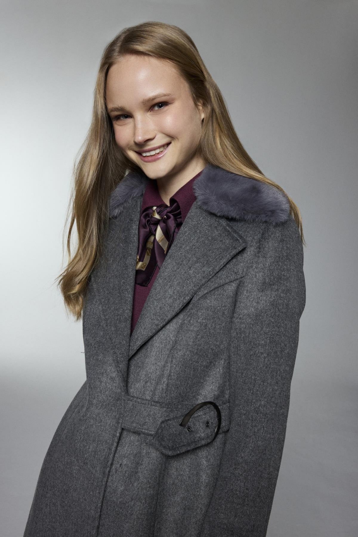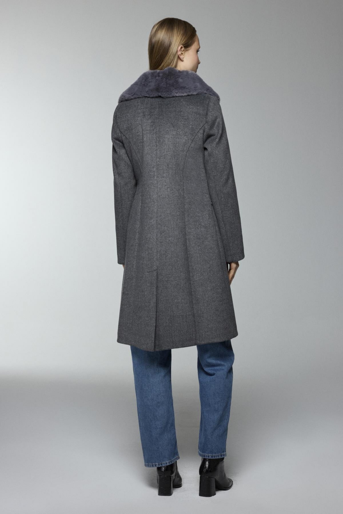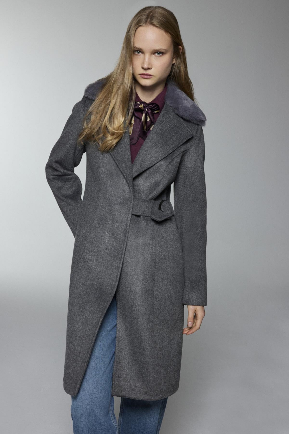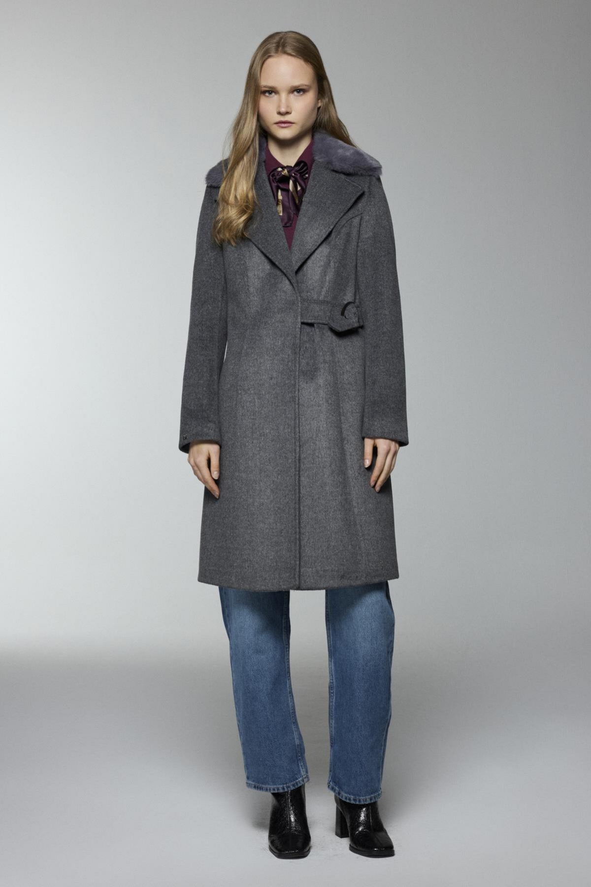 Kruvaze Yaka Kemer Detaylı Kaşe Füme Kaban 13404