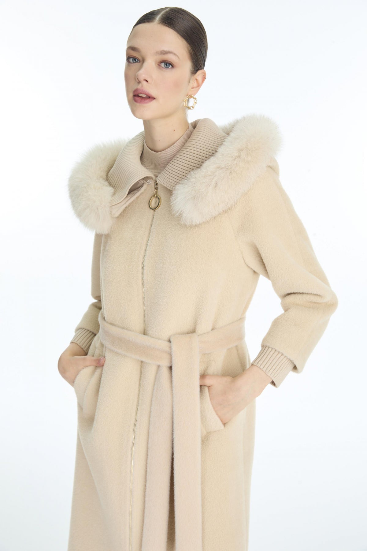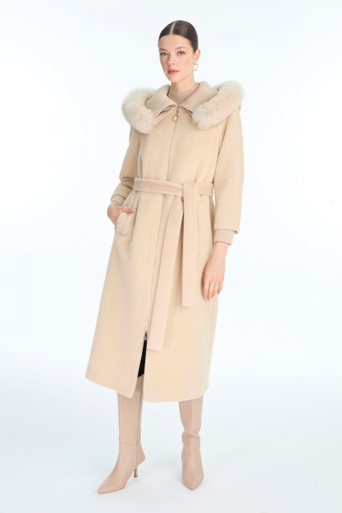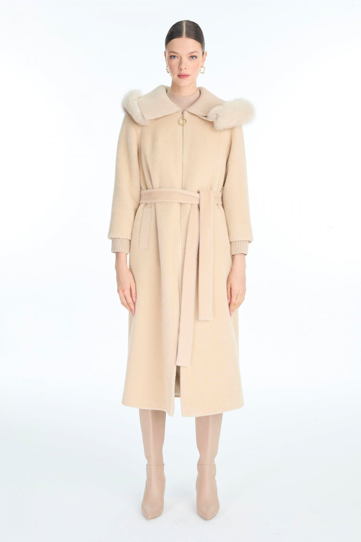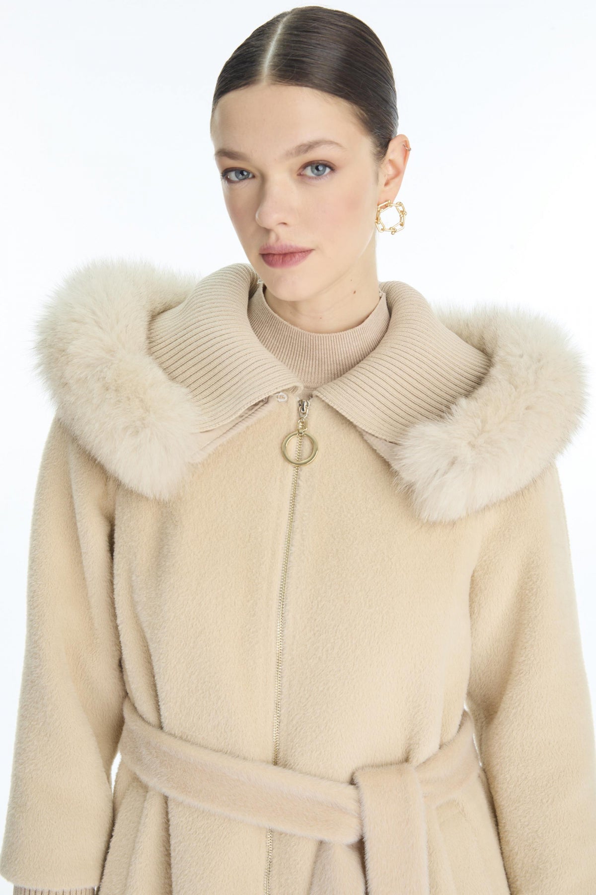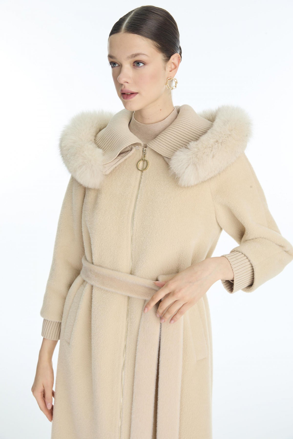 Ürün Detayları: Yaka detaylı, Kuşaklı, Uzun kesim, Fermuarlı, Kapüşonlu