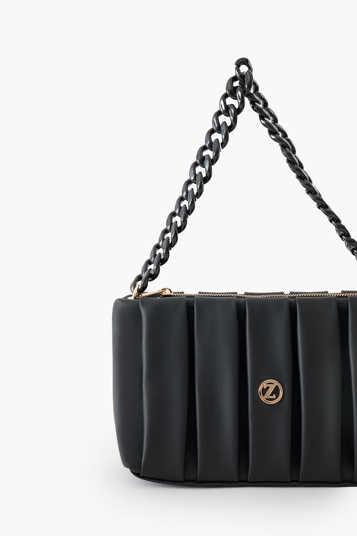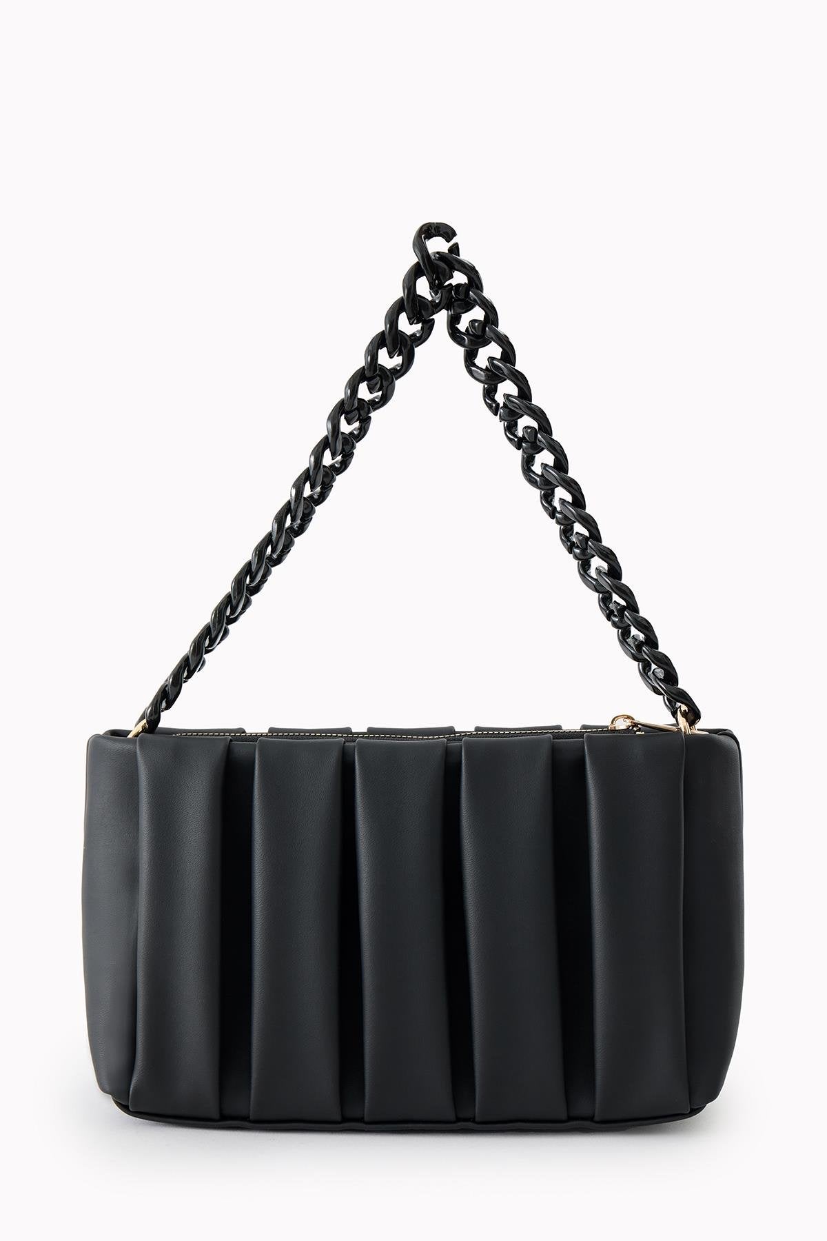 Modern ve minimal tasarımıyla dikkat çeken çanta modelimiz, pile detayları ve şık zincir sapı ile kombinlerinize zarif bir dokunuş katıyor. Günlük kullanım için ideal olan bu model, sade tarzıyla öne çıkmak isteyenler için tasarlandı.